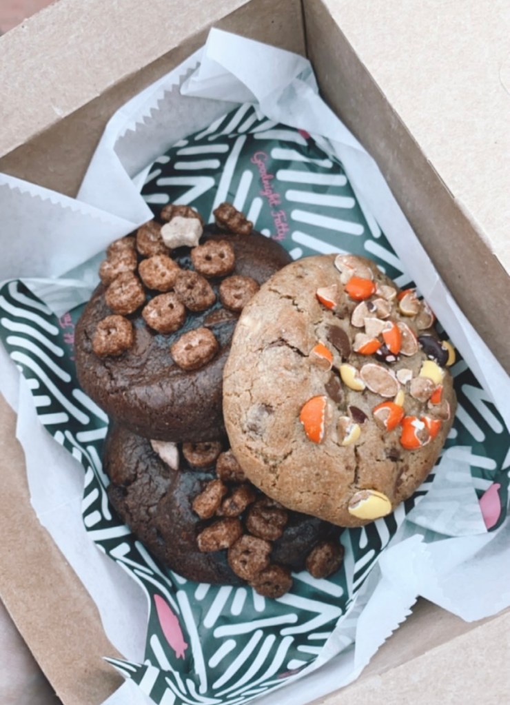 Goodnight Fatty puts Crumbl cookies to shame, by incorporating your favorite Halloween candy into the mix.